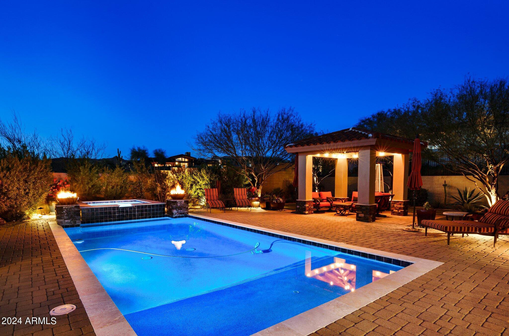 The home's resort-style backyard oasis, featuring a pool and spa, ramada for relaxation, and a new built-in BBQ for outdoor entertaining. Updated in 2022, this residence showcases new interior and exterior paint, landscaping including new irrigation and landscape lighting, tankless water heater, whole house filtration system, LED can lighting, ceiling fans, pool filtration system, and much more.
